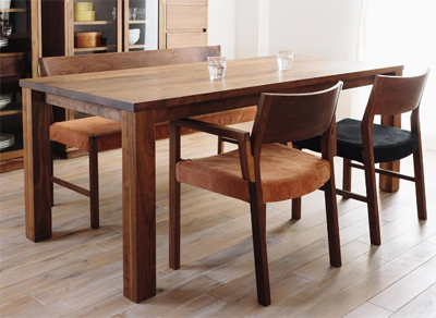 たとえば、無垢材の温もりを活かしたダイニングテーブルや、曲線が美しいアームチェア、アートのような照明器具。